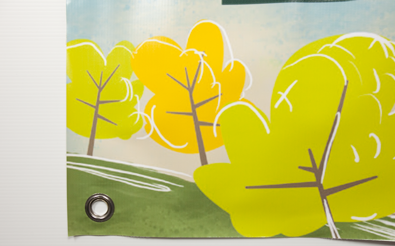 Impression sur bâche intérieure ou sur bâche extérieure, tous formats, grande résistance, avec intégration d’oeillets pour les grands formats.